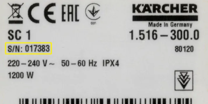 - The silver data plate for hard floor cleaners & electric wiping mops will be located either behind the removable detergent tank or the underside of the roller cover. If you have an FC 4-4, this may be located underneath the handle.